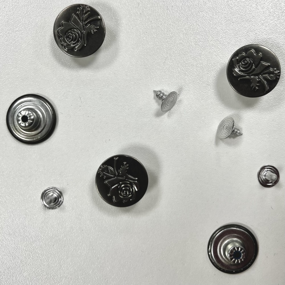 Sachet de 5 boutons de JEANS motif "ROSE" à poser avec la pince ZYT et l'embout "JEANS PLAT"